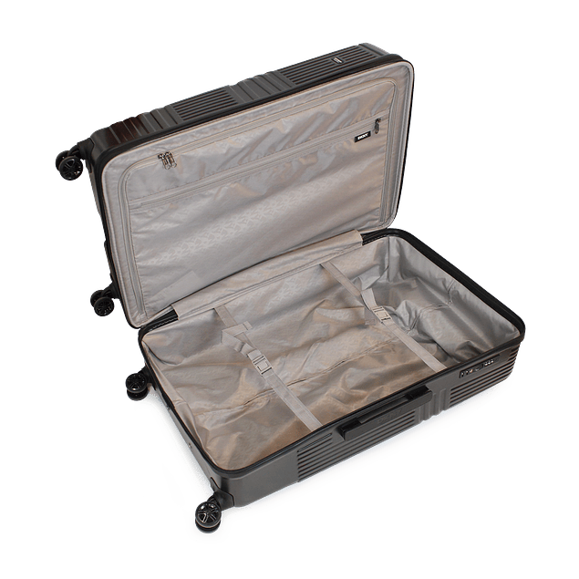 - Interior maleta Grande: Cuenta con 1 amplio compartimiento y bolsillo con cierre + 2 bandas ajustables para mantener el contenido seguro en su lugar